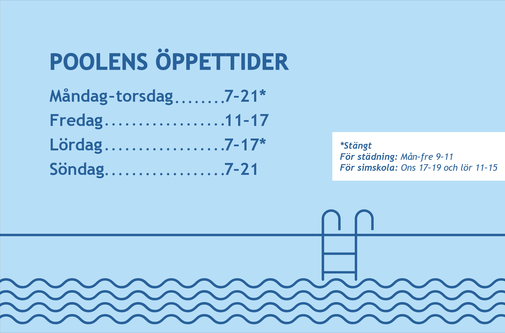 Poolen är öppen alla dagar förutom under städtid och simskola.
