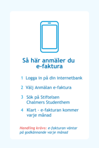 E-faktura kan väljas av alla som hyr i första hand hos Chalmers Studentbostäder.
